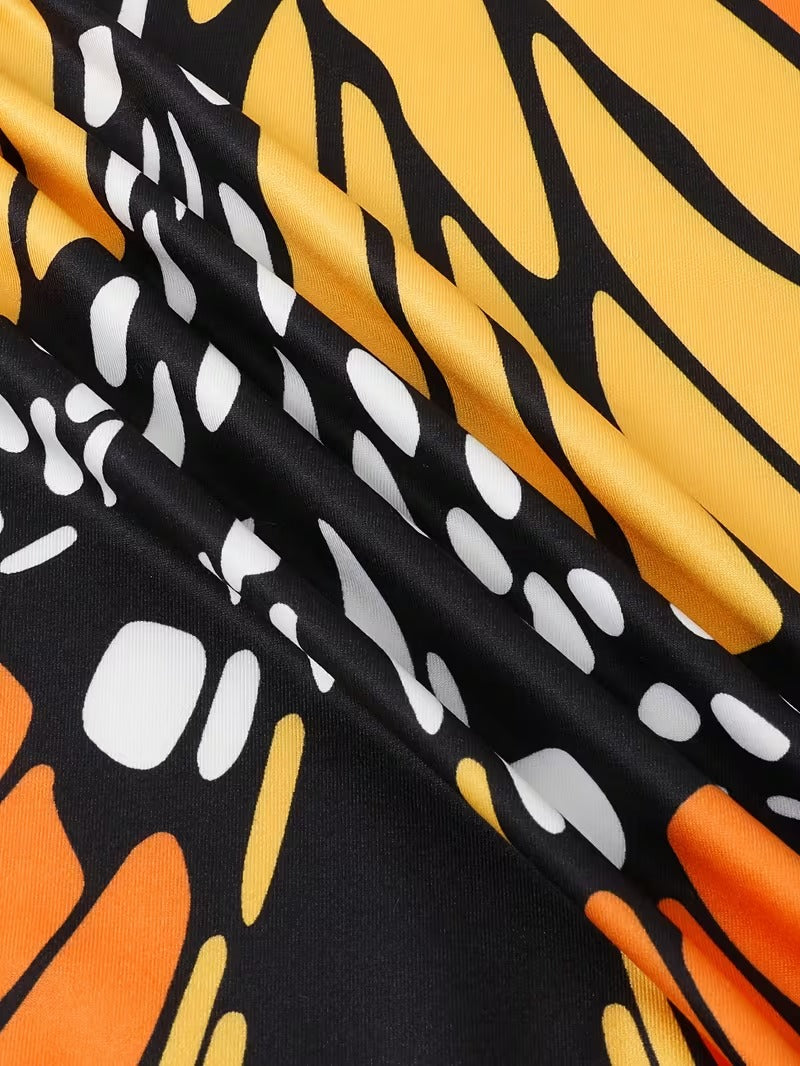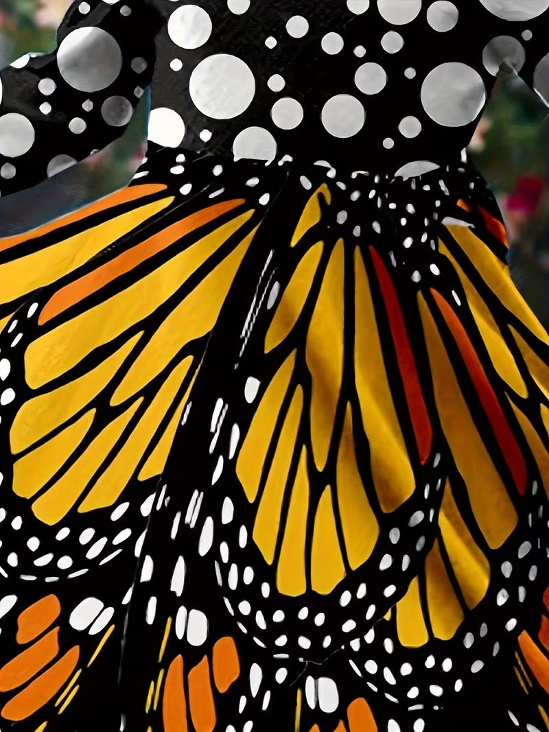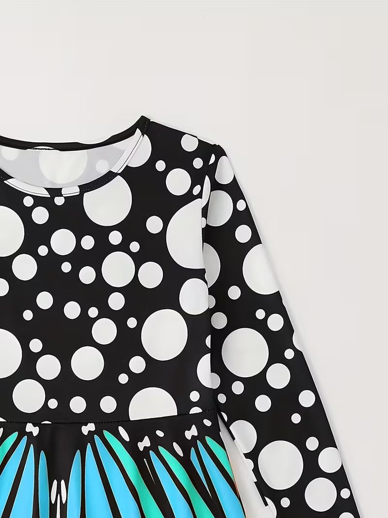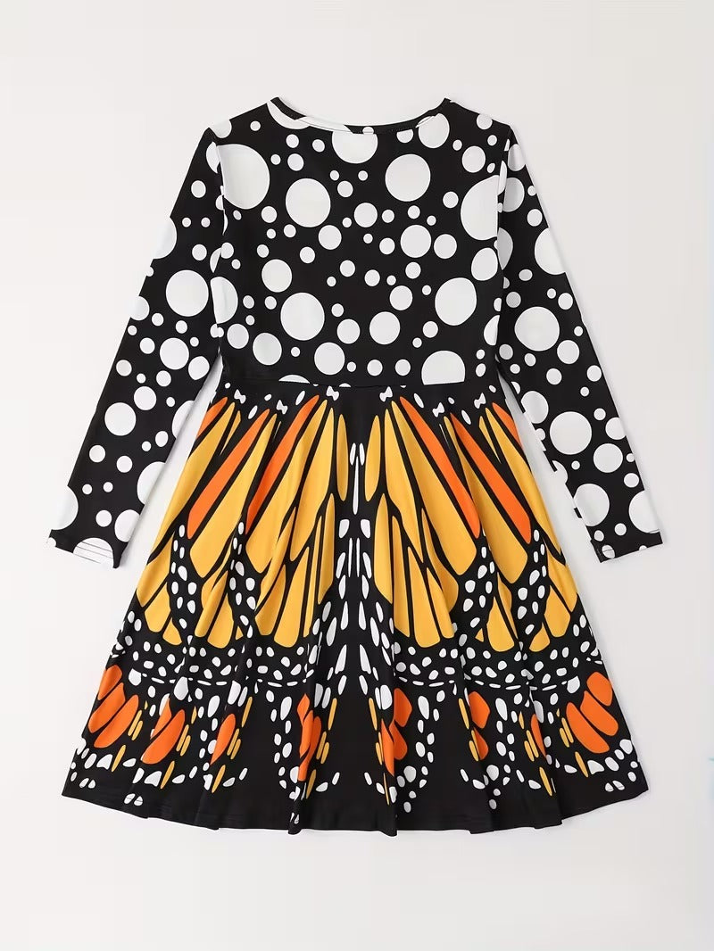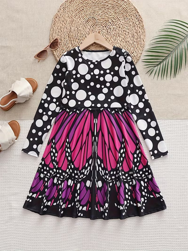 Flerfarvet sommerfuglevinge langærmet pigekjole