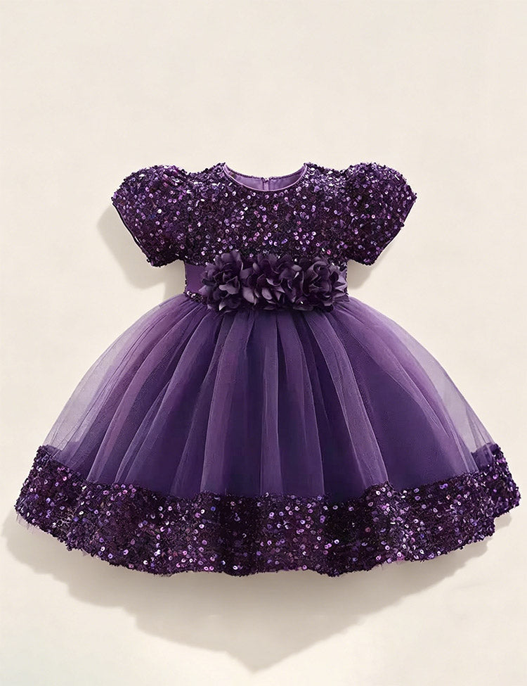 Burgundy Sparkle Puff Sleeve Tulle Ball Gown